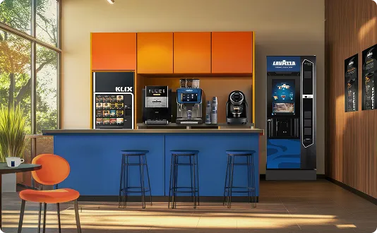 Avec nos distributeurs de boissons professionnels KLIX, seuls ou en complément de notre gamme de machines à café grains, nous vous offrons la solution parfaitement adaptée à vos espaces de travail, quel que soit votre taille et votre secteur d’activité.